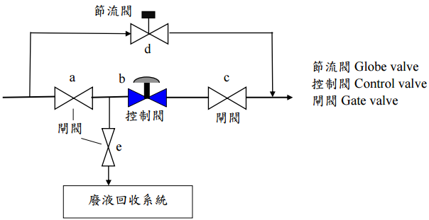 四、控制閥管路如下圖所示,在正常操作下,閥 a, c 是打開的而閥 d, e 是關閉的: