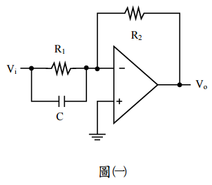 一、分析圖⑴所示之電路。若電路之零點頻率為 1 K rad/sec,C= 1μF。(20 分)