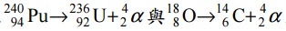 與 α 的 質 量 分 別 為 240.053814u 、 236.045568u 、 17.999161u、14.003241u 與 4.001506u,在