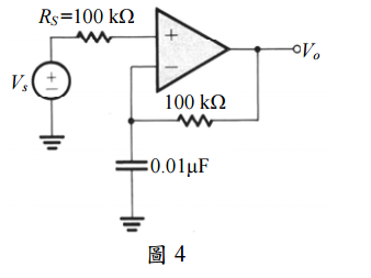 四、圖 4 中運算放大器之開迴路增益為 10