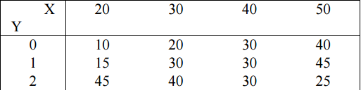 二、令 X 表示某路口違規闖紅燈之次數,Y = 0, 1, 2 分別表示雨天、陰天、晴天,下表 為該路口 360 天之統計資料,試求: