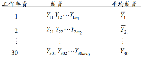三、研究人員欲探討員工薪資(Y