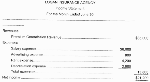 四、Logan Insurance Agency prepares monthly financial statements. Presented  below is an income statement for (he month of June that is correct on the basis of AddiHonal Data: When the income statement was prepared, the company accountant neglected to take into consideration the following information: