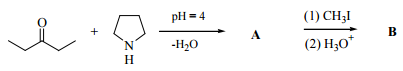 四、寫出下列反應式中的主要產物 A 至 B 的結構式(A、B 各 3 分)與反應機構。(4 分)