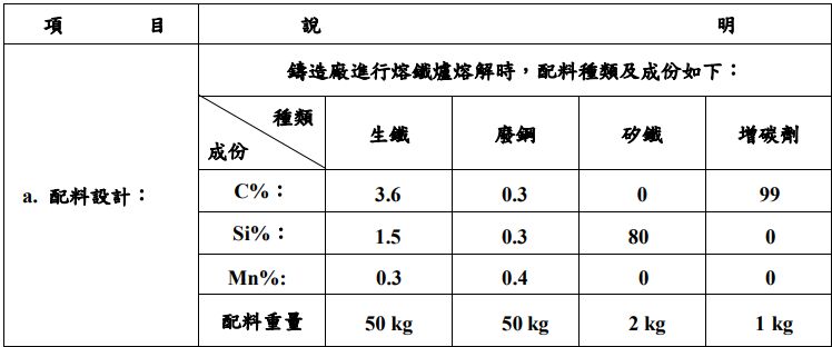 a. 配料設計: C%:____1___Si%:____2___Mn%:____3___