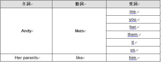 當我們要在受詞的位置放入人稱代名詞時,我們須填入人稱代名詞的受格,茲將人稱代名詞幾個常考的形式列表如下: