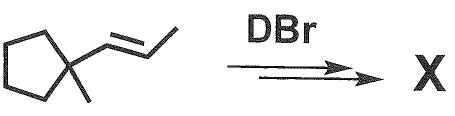 (一)For the following DBr addition reaction (D; deuterium), a cyclohexyl halide product (X) was obtained. Use "curved arrow" to show the details of the reaction mechanism of the formation of this product (X). Need to include the formation of intermediate(s) in your answer.