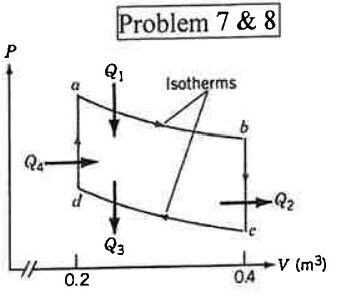8. Same conditions as the above question, find the total entropy change of the heat engine from b to a through the process of b→ c → d → a.