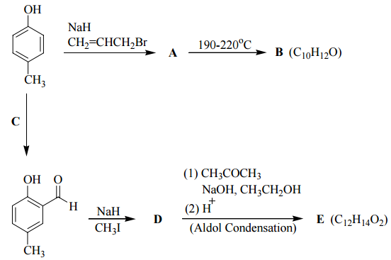 五、請寫出下列多步驟反應產物及試劑 A 至 E 之結構。(10 分)