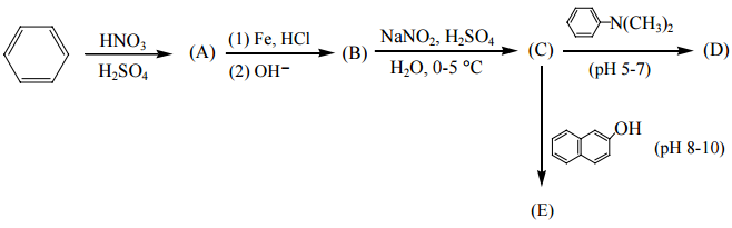 五、請寫出下列反應流程圖中主產物 A 至 E 的結構式。(10 分)