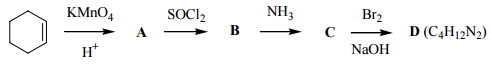 四、請寫出下列反應流程中產物 A 至 D 的結構式。(10 分)