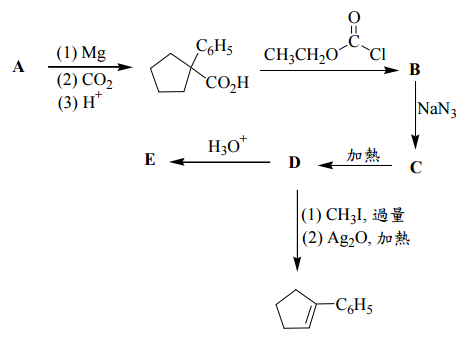 四、寫出下列反應流程圖中 A 至 E 的結構。(10 分)