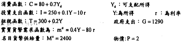 b)計算均衡所得、利率舆消费水準。(5°/»)