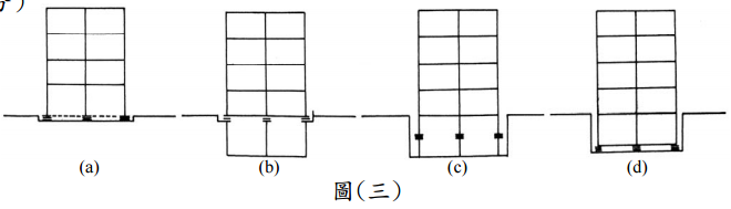 【已刪除】三、為防止大地震時建築物產生嚴重震害,基礎隔震(base isolation)在結構系統規劃 時常被考慮。所示為基礎隔震不同之規劃位置,試說明各規劃位置之優點 及缺點。(20 分)