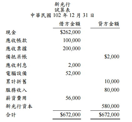 【已刪除】一、不浪為新光行之會計主任,年底時,新光行調整前試算表如下: