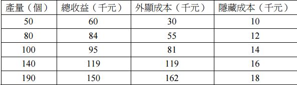 【已刪除】15 下表為某廠商的生產、收益與成本,那些產量可賺得經濟利潤(economic profits)?