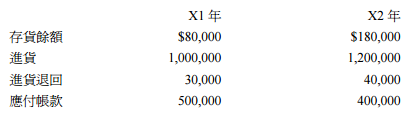 請問甲公司 X2 年度支付供應商現金之金額為多少? (A)$1,200,000 (B)$1,260,000 (C)$1,300,000 (D)$1,360,000