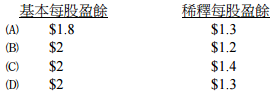 【已刪除】23 甲旅遊公司與乙公司剛完成企業合併,或有發行股份條件如下: A.若 X8 年中只要每開一家新分店,就立即發給 3,000 股普通股。 B.若 X8 及 X9 年度平均合併稅後淨利超過$39,500 時,每超過$1,200 就發給 1,300 股普通股。 C. X8 年 5 月 1 日、10 月 1 日及預定 X9 年 2 月 1 日各有一家分店開幕。 D. X8 年合併稅後淨利$45,500。 (E) X8 年初流通在外普通股 20,000 股。 試算 X8 年度之基本每股盈餘及稀釋每股盈餘。