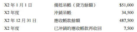 【已刪除】3 乙公司 X2 年 12 月 31 日應收帳款的淨變現價值為$450,000。下列為乙公司與應收帳款有關的資料: