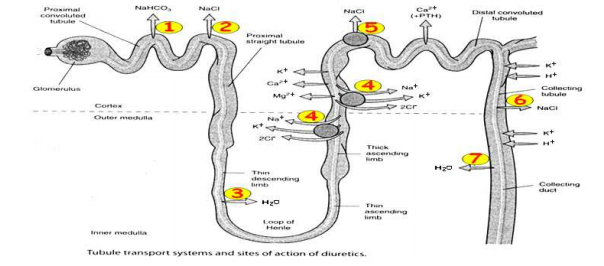 【已刪除】24.下列何藥物主要會抑制圖中位置2之NaCl再吸收?