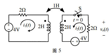 【已刪除】五、如圖 5 所示,若 t < 0 時電路為穩態,在 t = 0 時將開關關閉。求 v