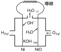 反應,氧氣在氧化鎳(NiO)極與水反應,反應的淨產物是水,氫氧化鉀水溶液為電解液。根據化學電池的原理,下列有關此電池的敘述,何者正確?