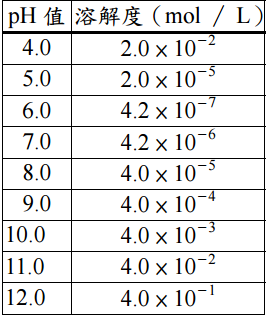 【已刪除】35.氫氧化鋁在不同 pH 值水溶液中的溶解度列於下表。