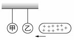 15.( )如附圖所示,兩個金屬球以絕緣線並排懸掛,取一支帶正電的玻璃棒由右方靠近(但不接觸)金屬球,下列何者正確?(A)甲、乙兩球都不帶淨電荷,但會相吸 (B)甲、乙兩球都不帶淨電荷,但會相斥 (C)甲、乙兩球都帶淨的負電荷,兩球會相斥 (D)甲帶淨的正電荷、乙帶淨的負電荷,兩球會相吸。