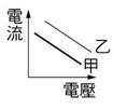 33.( )甲~丁四種物體兩端的電壓與通過電流的關係如附圖所示,試問哪一個物體符合歐姆定律?(A)甲 (B)乙 (C)丙 (D)丁。