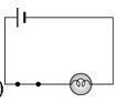 12.( )關於附圖電路的敘述,下列何者正確?(A)電路接通時,流過電燈泡的電流向左 (B)電路接通時,電線內的電流由負極流向正極 (C)想在a、b之間接一個安培計,正極端子應接a點 (D)電路中若有電流,就表示有正電荷在電路中流動。