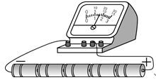 93.( )小偉利用伏特計測量五個乾電池串聯的電壓,其測量的結果如附圖所示(正極導線接在右邊中間接頭),試問這五個乾電池串聯的電壓應該為多少伏特?(A)1.4 (B)1.5 (C)7.5 (D)14.0。