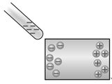 78.( )用毛織布摩擦過的塑膠棒接近一驗電器,但不與其接觸,下列何者所呈現的電荷分布最合理?(A) (B)(C)(D)