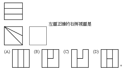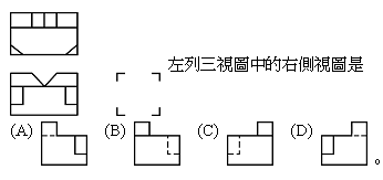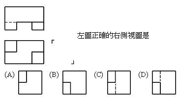119. 物體投影成平面視圖時,視圖上的線條代表 (A)面的邊視 (B)面與面的交線 (C)面的極限 (D)以上皆可。