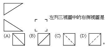 150. 一單斜面在三個主要視圖中呈現 (A)一面二線 (B)二面一線 (C)三線 (D)三面。