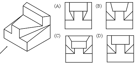 141. 針對下圖所示立體圖,請依箭頭指示方向選出正確的前視圖。