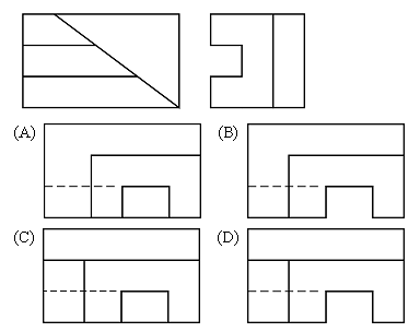 118. 如下圖之前視圖和右側視圖,請選出正確的俯視圖。