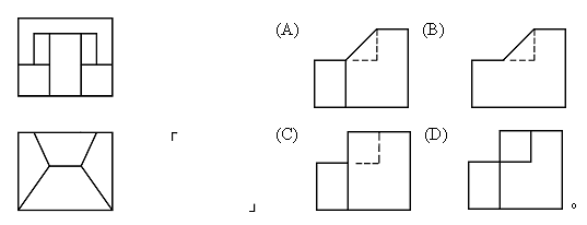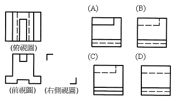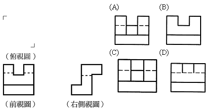 122. 如下圖前視圖和俯視圖,請選出正確的右側視圖。