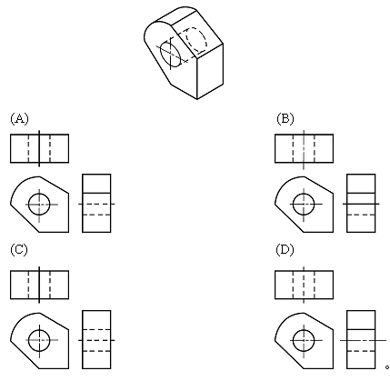134. 針對下圖所示立體圖,請依第三角投影法,選出正確的投影視圖。