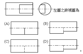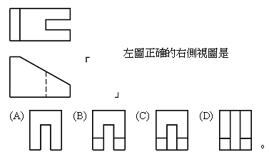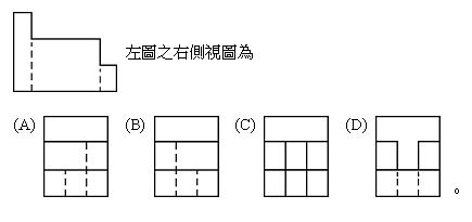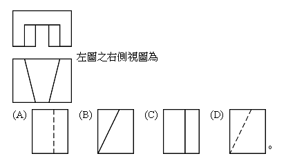 24. 依據第一角法排列位置,左側視圖應置於前視圖的 (A)左方 (B)右方 (C)上方 (D)下方。