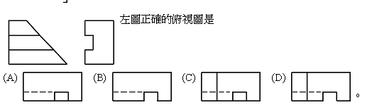 26. 依據第一角投影法及第三角投影法,正投影中的俯視圖應分別在前視圖之正 (A)上方、右方 (B)上方、下方 (C)下方、右方 (D)下方、上方。