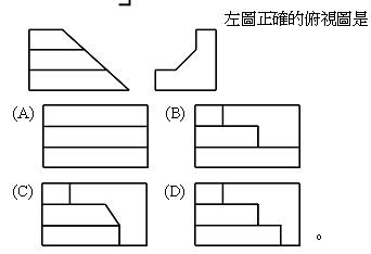 184. 在水平面上兩平行的水平線,其俯視圖的投影,呈現 (A)互相平行的二直線 (B)不平行的二直線 (C)互相平行但重疊成一線 (D)二點。