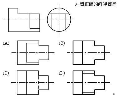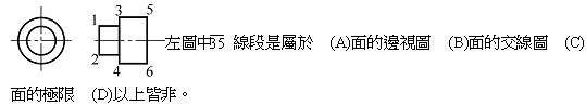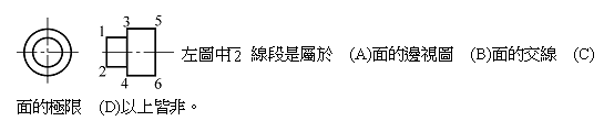 167. 圓柱面之邊視圖為 (A)點 (B)直線 (C)矩形 (D)圓形。
