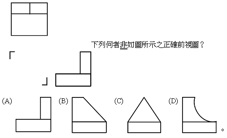 200. 在正投影視圖中,選最能代表物件形狀的方向為 (A)俯視圖 (B)前視圖 (C)側視圖 (D)後視圖。