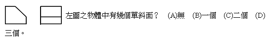 152. 在正投影視圖中形成面的,可能代表物件的 (A)正垂面 (B)單斜面 (C)複斜面 (D)以上皆可。