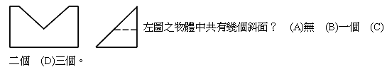 218. 不與任一主要投影面垂直的平面,稱為 (A)單斜面 (B)複斜面 (C)垂直面 (D)水 平面。