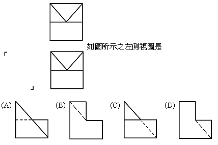 227. 物體上的一平面與投影面垂直時,所得的正投影視圖,稱為此平面的 (A)單斜面 (B)邊視圖 (C)複斜面 (D)端視圖。