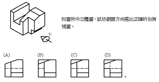213. 如圖所示立體圖,試依箭頭方向選出正確的右側視圖