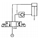 41. 下圖的迴路中如裝有導壓操作止回閥,則換向閥的中位形式應為 (A)中位全閉(B)中位全開(C)中位PT通(D)中位ABT 通較為理想。