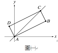 將一長 3 公分、寬 1 公分的矩形 ABCD 的頂點 A 置於坐標平面上的原點 (0,0),其頂點 C 落在第一象限直線 x=y 上,則第一象限內 B 點的 x 坐標為 【