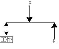34. 由壓板與螺栓組合而成的夾緊構件,如下圖所示,夾緊力若要較大,則應選用下列何者?(A)P 愈接近工件(B) P 愈遠離工件(C)R 愈接近工件(D)任何方均可。